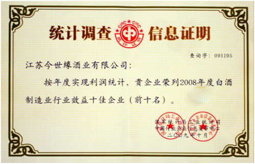 2009年10月24日,在北京召开的全国工业重点行业效益十佳企业信息发布会上,公司位列2008年度白酒制造业行业效益十佳企业,提前两年实现了“跻身行业十强”的目标,实现了企业的历史性突破。