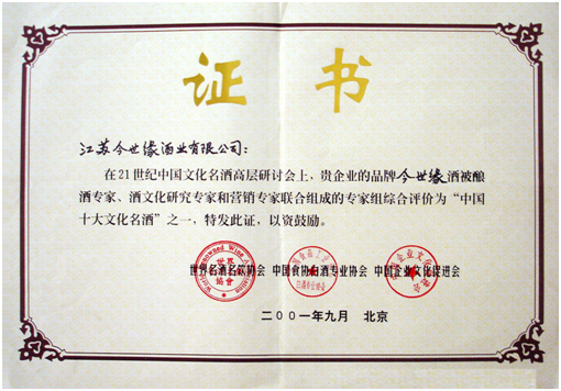 新品“国缘”系列酒首先在南京上市,成为江苏白酒行业第一支抢滩高端市场的“领袖级礼宾酒”。“国缘”品牌多年来与大事相约,同成功相伴,为英雄干杯,以“冠军品质”开启成功之缘。2007年,荣膺“中国十大高端商务白酒品牌”;2008年,荣获“2007-2008年度食品工业科技进步优秀项目奖”;2009年,被确定为中华人民共和国外交部和驻外使领馆接待用酒,作为“国礼”赠送给泰王国诗琳通公主等“十大国际友人”,为庆祝新中国成立60周年特别制作的“国缘”V6隆重入市;2010年,被认定为“中国驰名商标”、确定为上海世博会联合国馆专用白酒;2011年6月,国缘V9——献礼建党90周年上市仪式在北京人民大会堂举行,同年12月,国缘K系列新品上市。2015年,国缘销售额突破20亿,被行业专家誉为“中国次高端白酒增长极的创造者”。